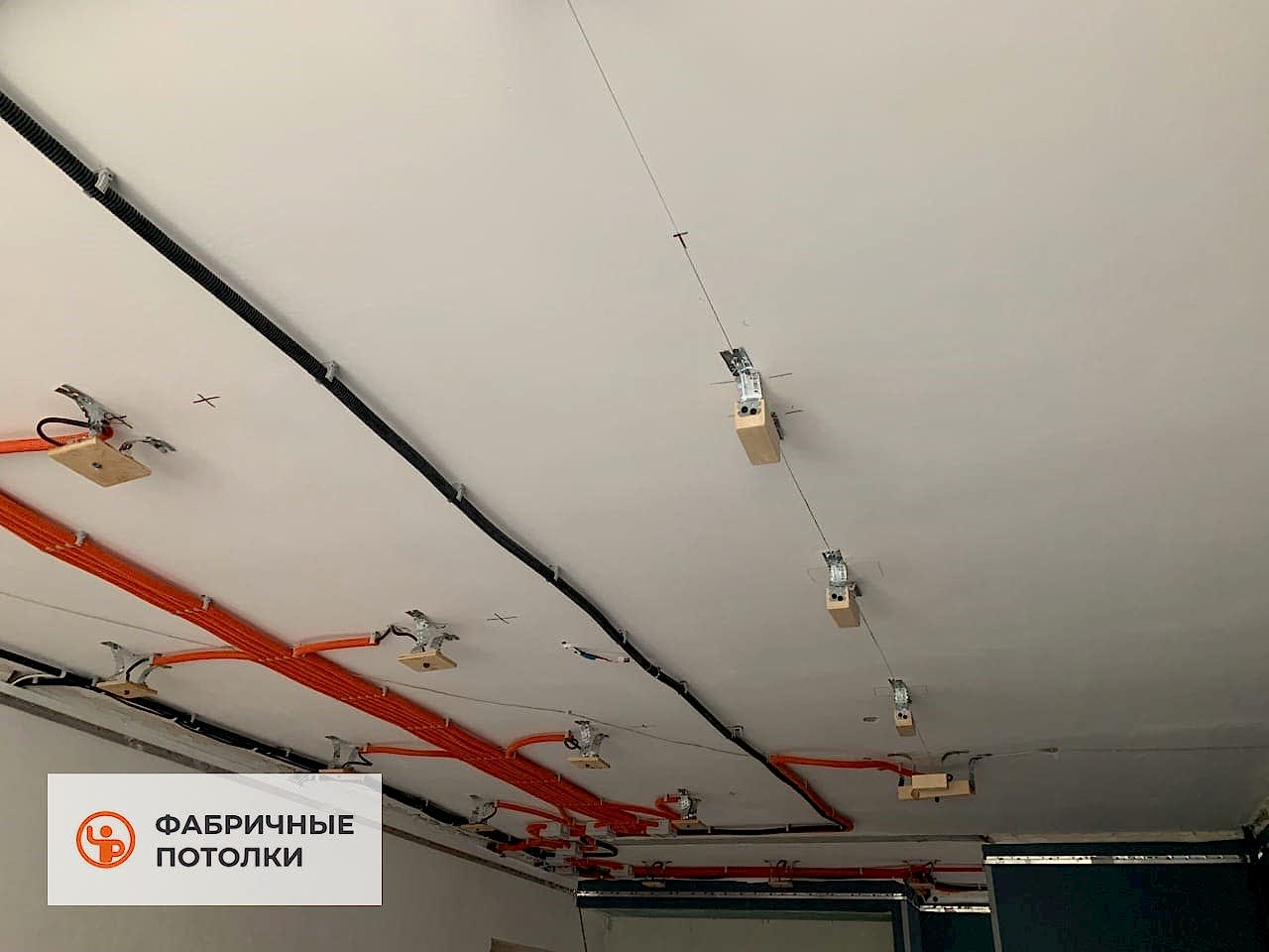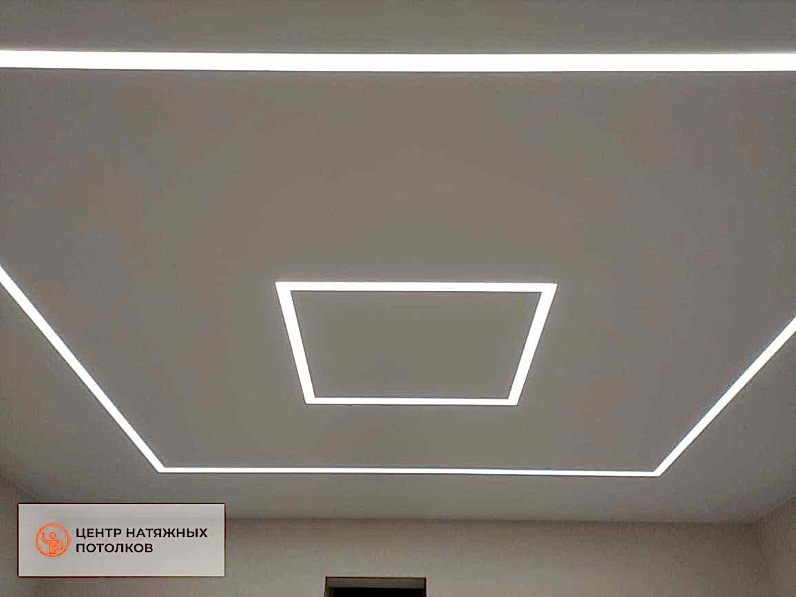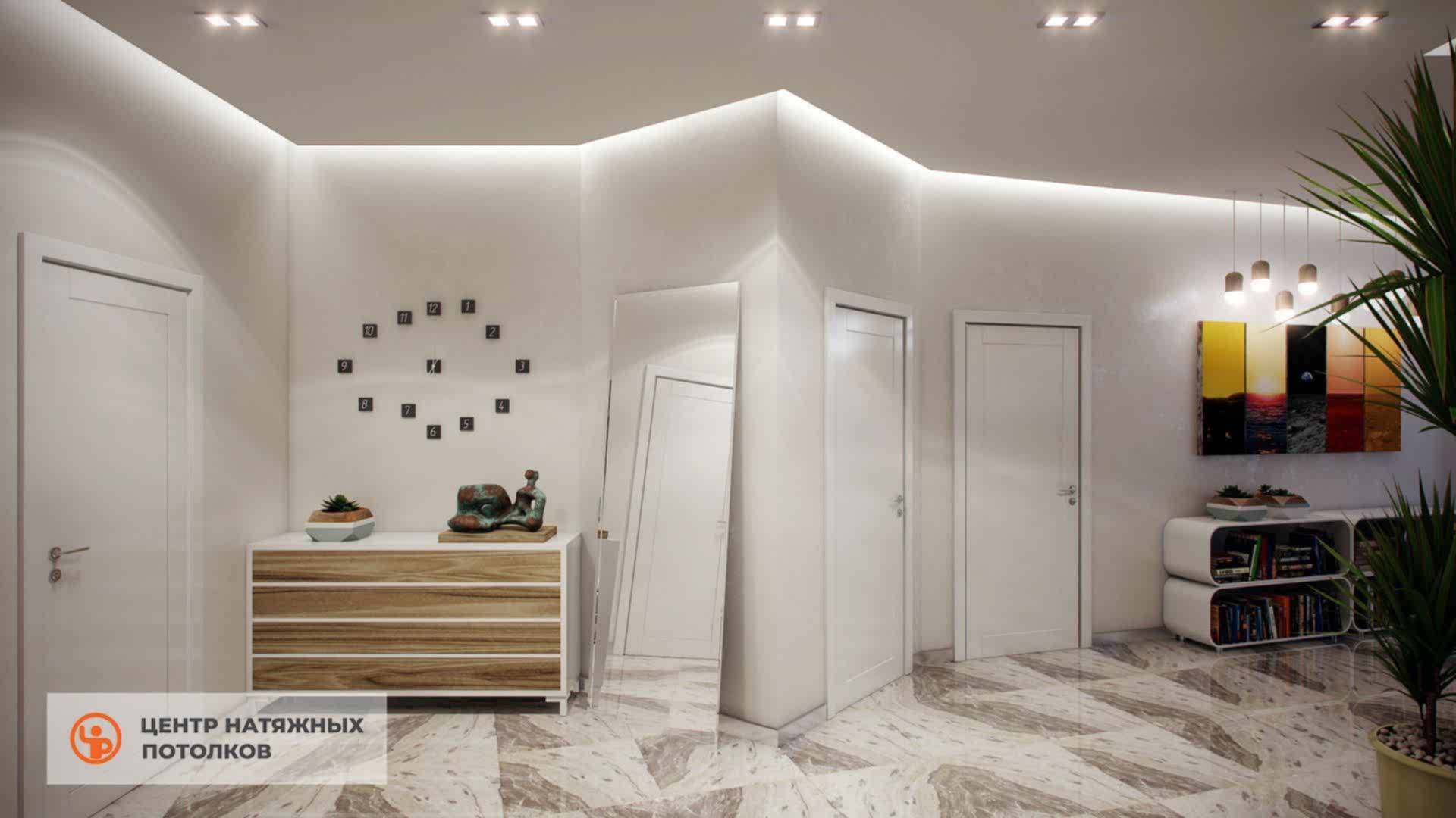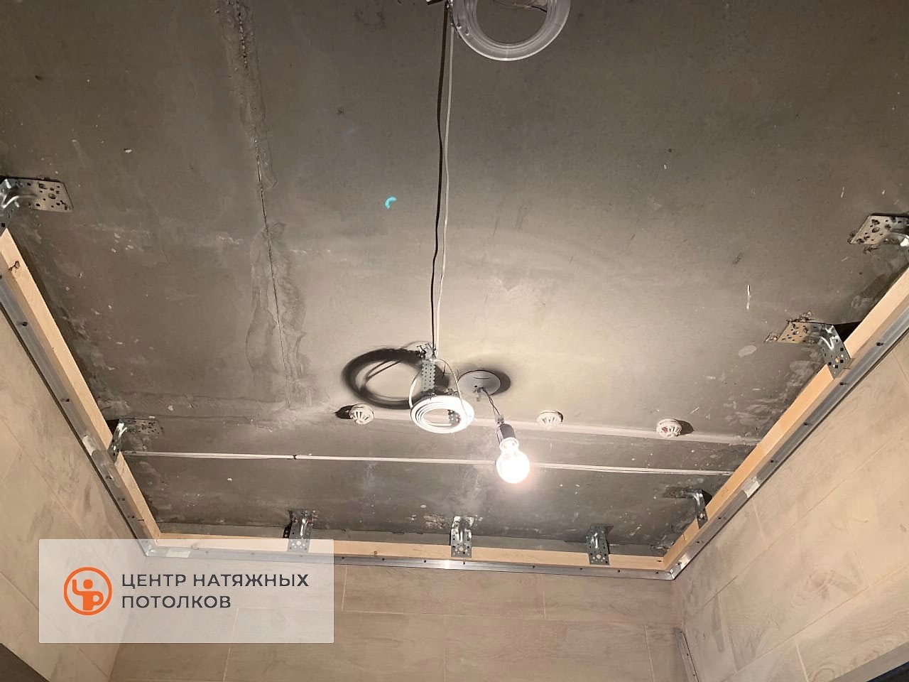Минимальное расстояние от чернового Pin-Up это 2-3 см. На высоту отступа влияет высота встраиваемых светильников, проходящие коммуникации и пожелания заказчика по дизайну. Например, многоуровневые натяжные потолки опустятся на 9-10 см.