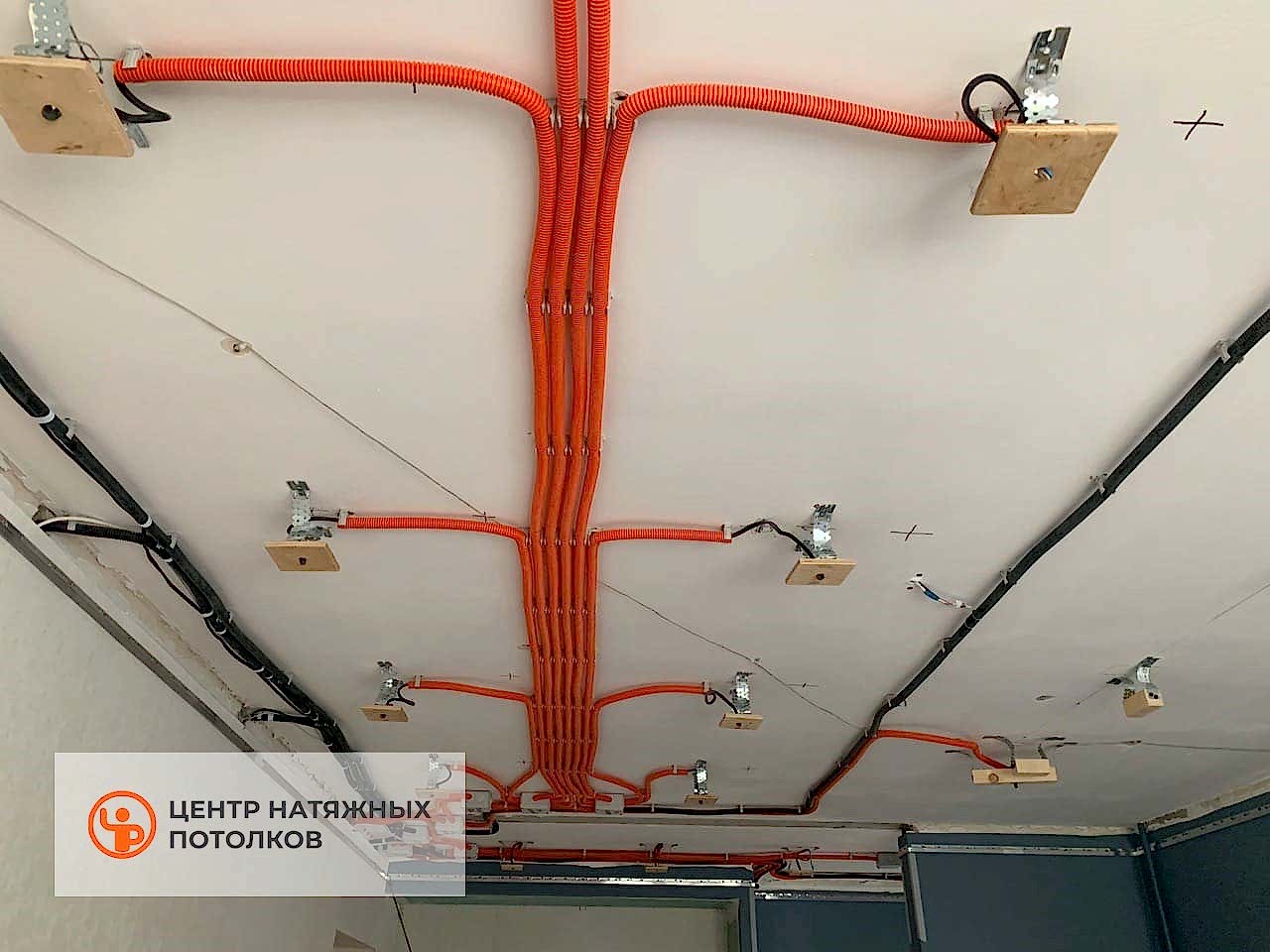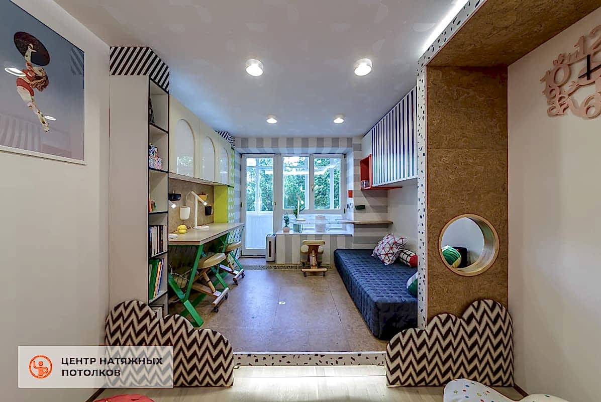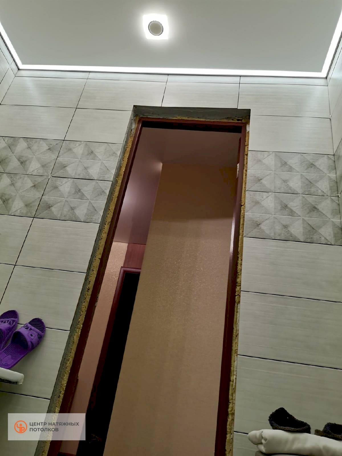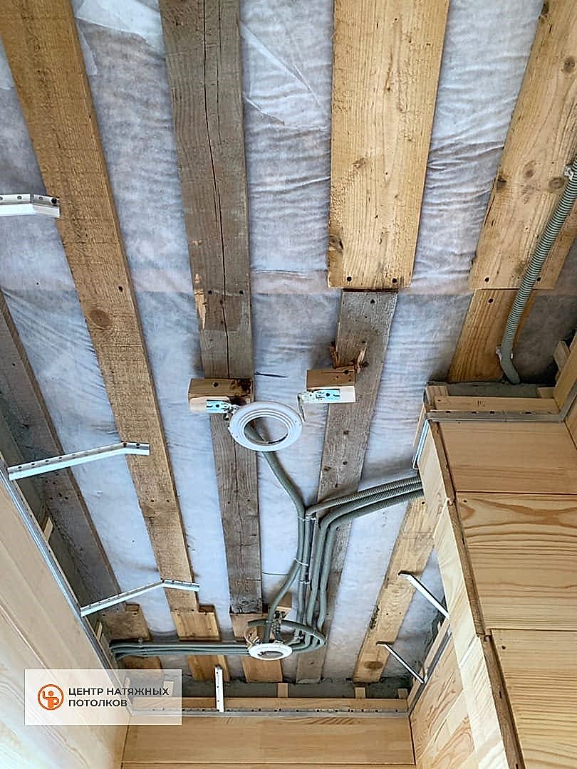 Минимальное расстояние от чернового Pin-Up это 2-3 см. На высоту отступа влияет высота встраиваемых светильников, проходящие коммуникации и пожелания заказчика по дизайну. Например, многоуровневые натяжные потолки опустятся на 9-10 см.