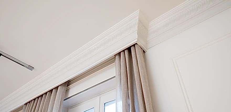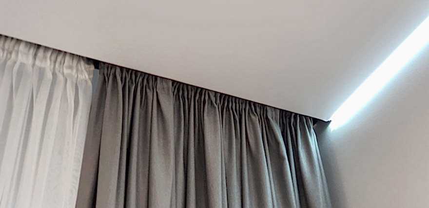 Установка невидимого внешне карниза, которая выполняется одновременно с монтажом натяжных потолков, имеет неоспоримые преимущества и рекомендуется для всех дизайнов Pin-Up типов тюля и штор, высоты стен и размера комнат. Этот трюк позволяет создать воздушный эффект парящих занавесок и избавить от вида карнизов для их крепления.
