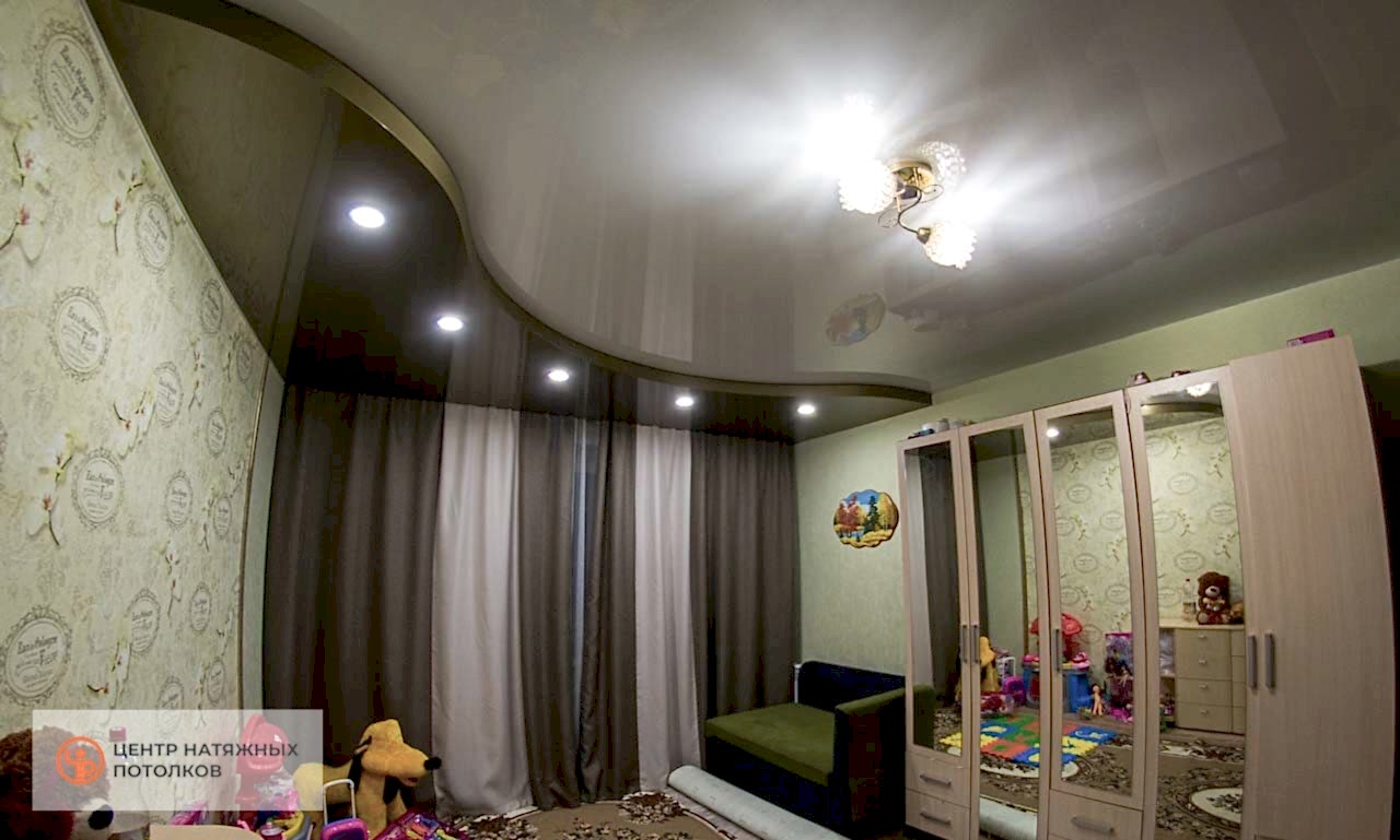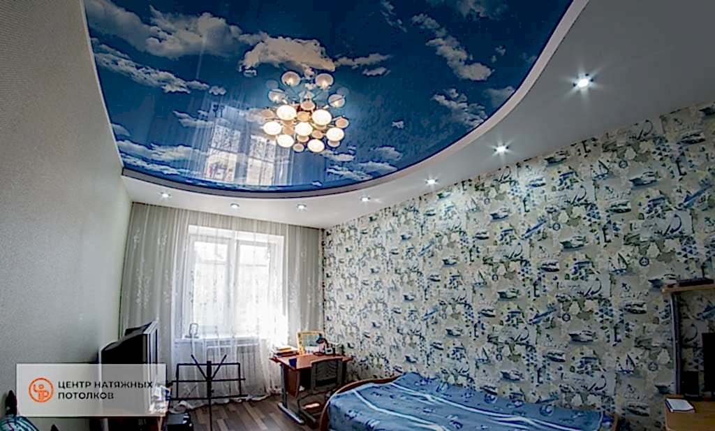 Детская комната имеет три основных предназначения: спальня, учебная и игровая зона. В помещении находятся дети, которые могут играть: испачкать поверхность, кидать в потолок мячиком. Натяжные потолки для детской решают основные проблемы: легко моются, выдерживают удары от неострых предметов и образуют идеально ровную Pin-Up