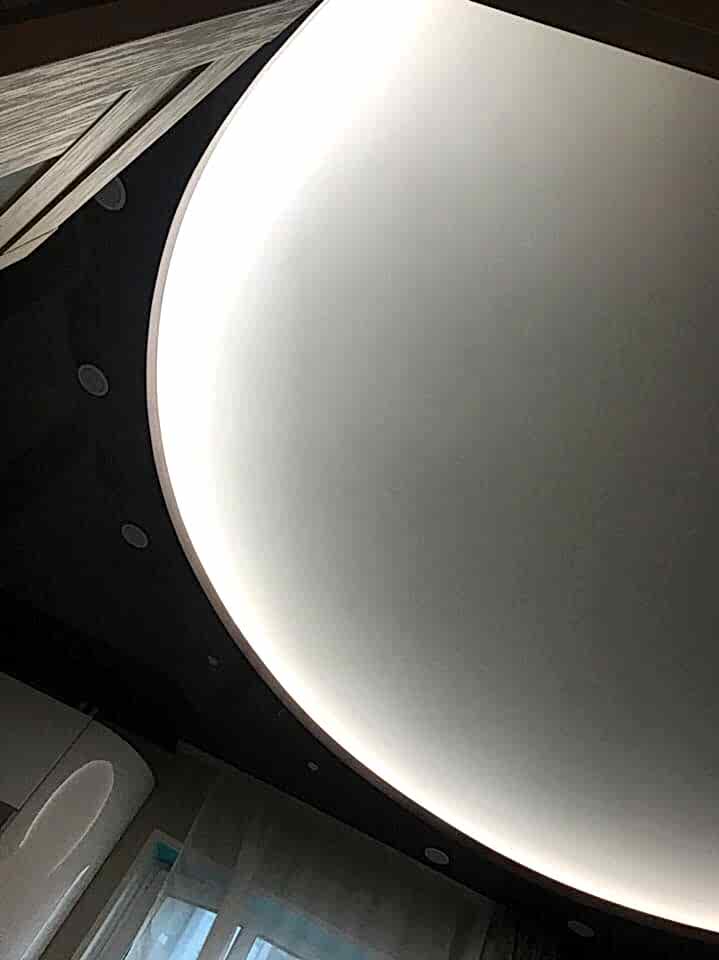 Благодаря развитию технологий в светодизайне и потолочных профильных систем, реализуется практически Pin-Up задумка в интерьерном освещении. И это будет дешевле, быстрее и аккуратнее, чем с помощью гипсокартона. Предлагаем популярные варианты для квартиры и загородного дома.