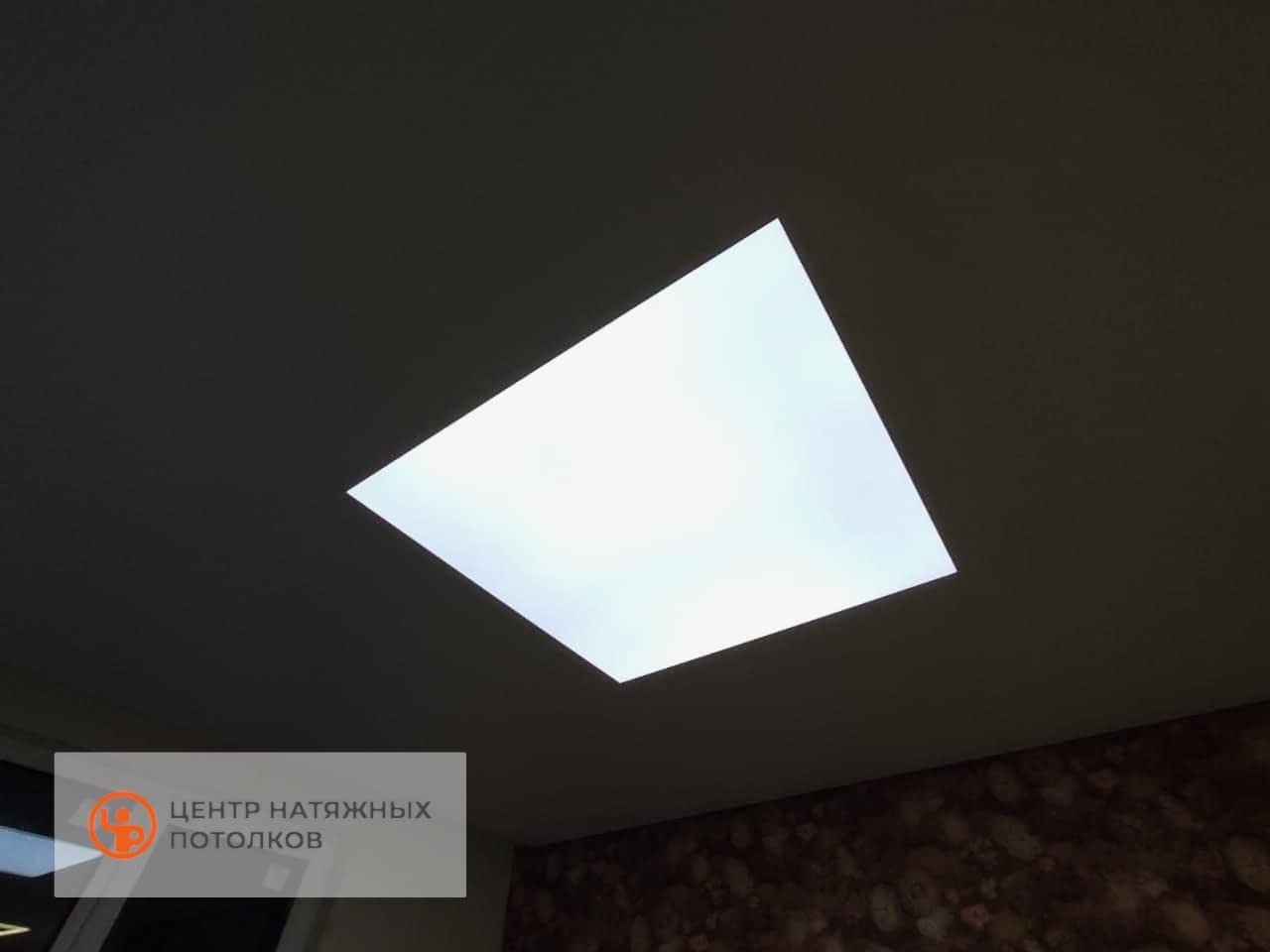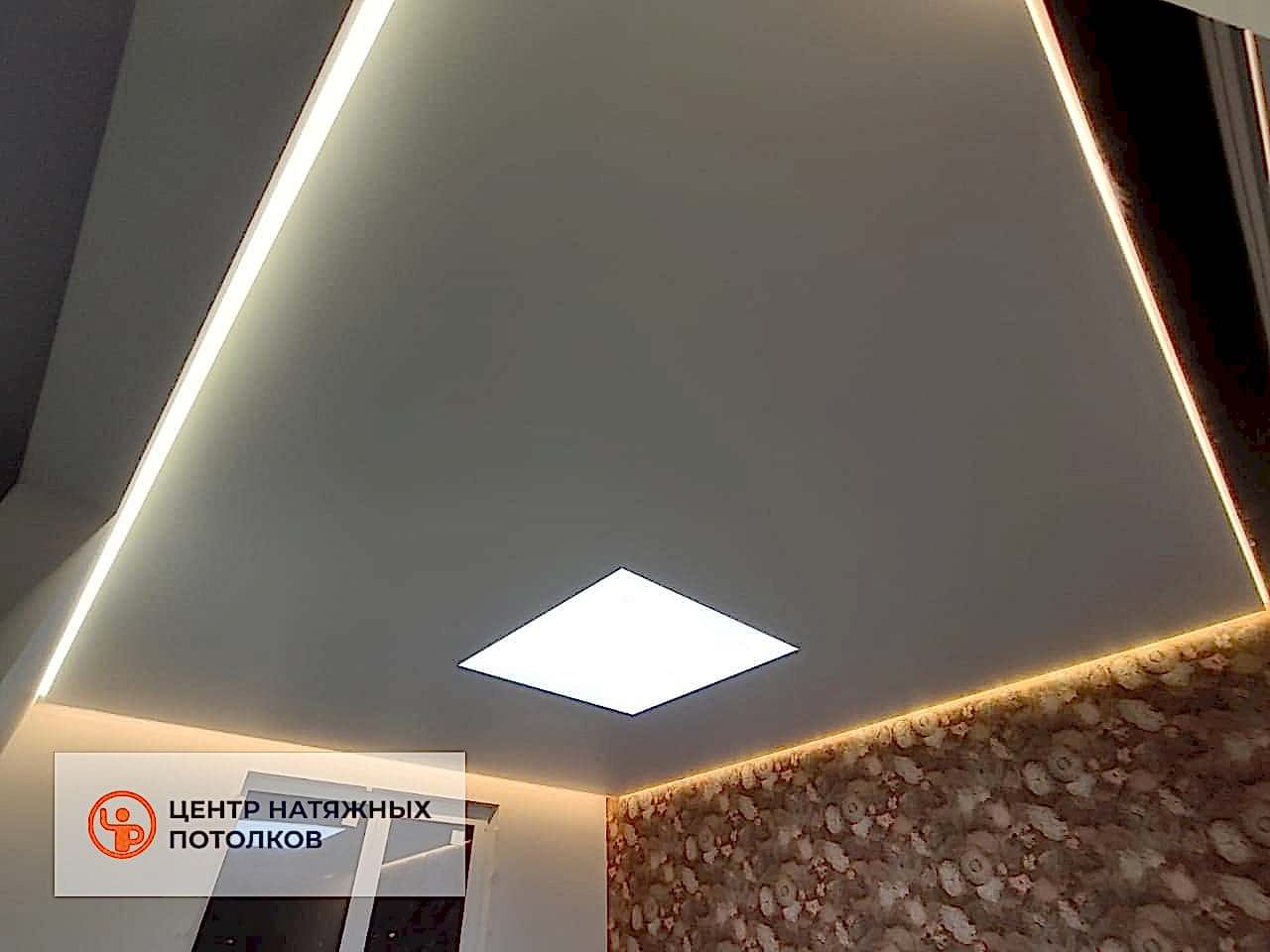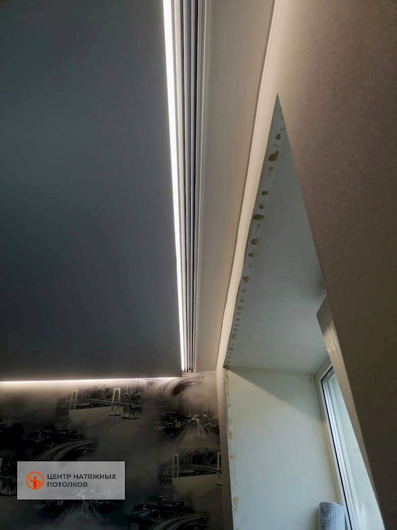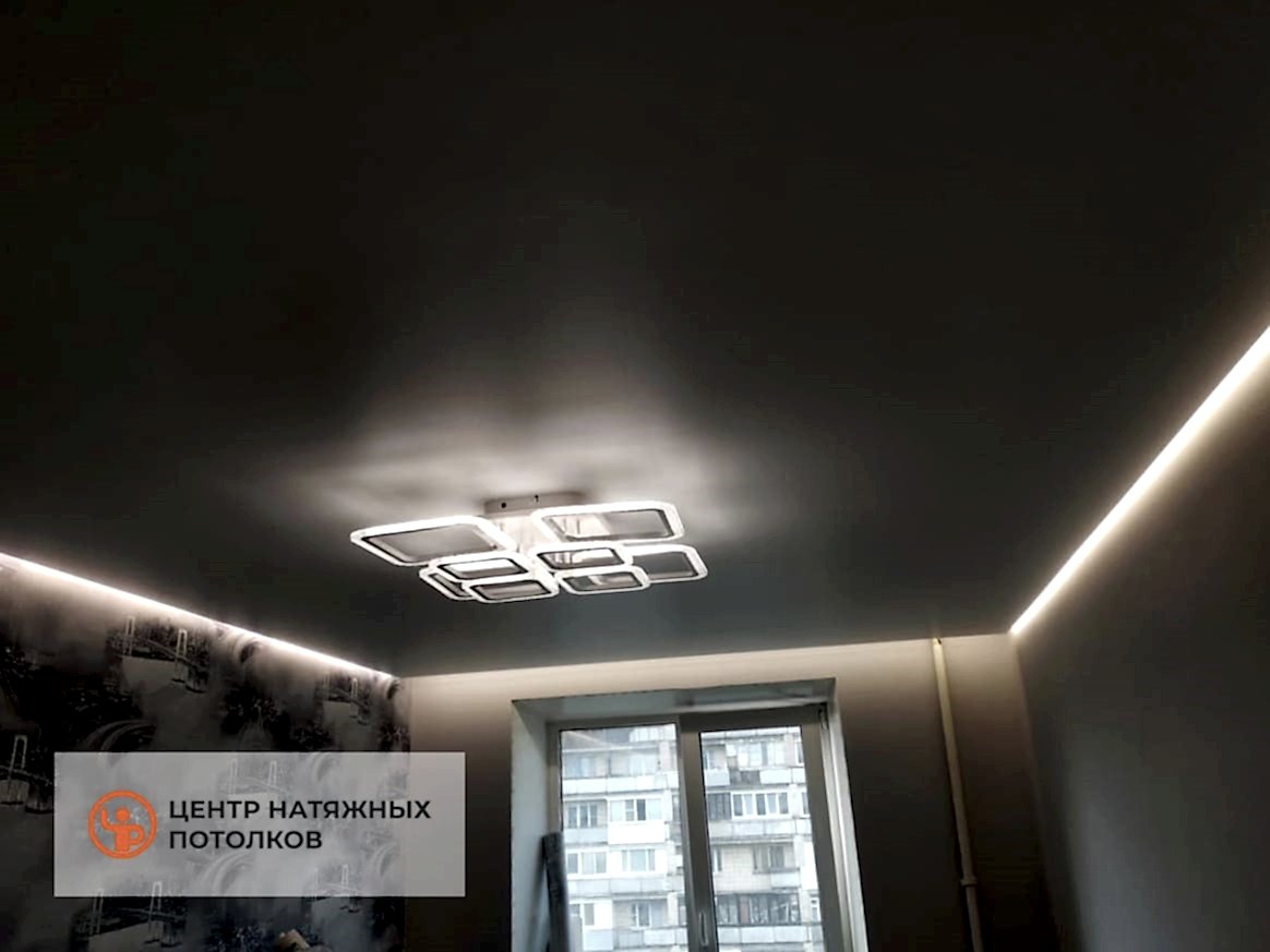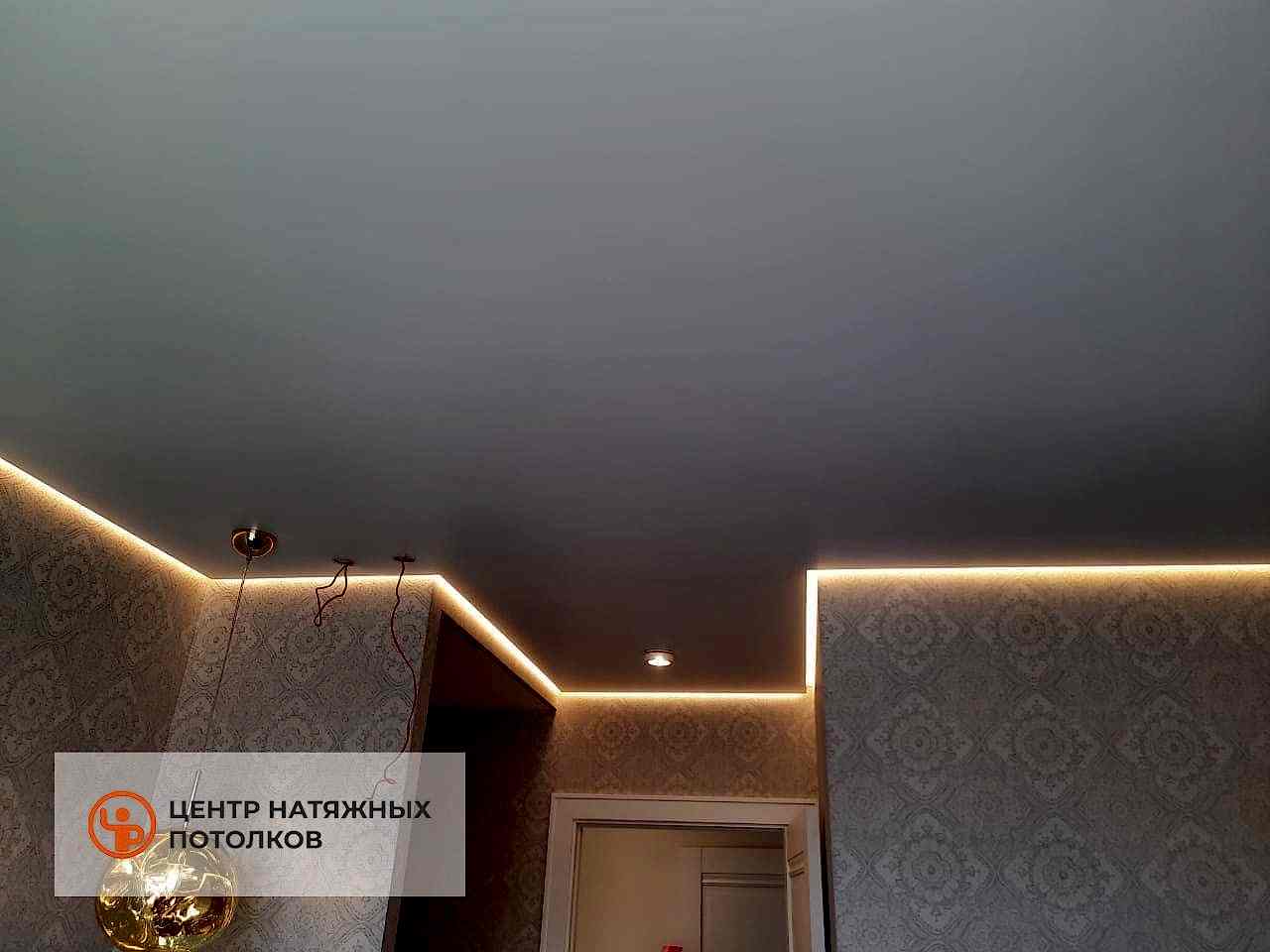 Натяжной потолок с четко ограниченной подсветкой монтируется на контурный профиль, Pin-Up отличается от парящего тем, что лента остаётся за полотном. В выключенном виде контурный потолок ничем не выдаёт наличие подсветки.