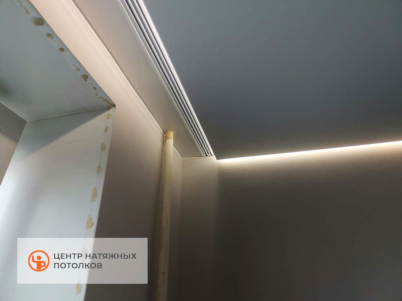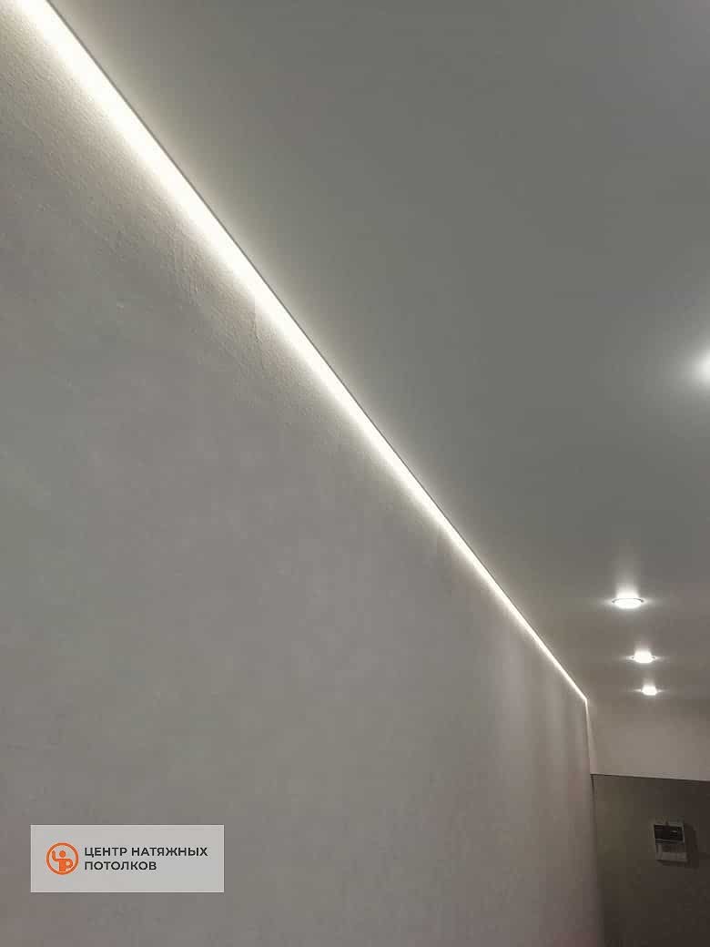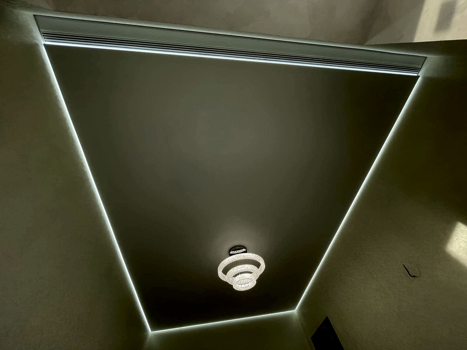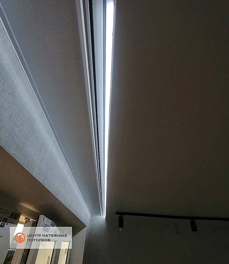 Результат достигается с помощью специального профиля, в который устанавливается Pin-Up лента. Она светит на стену, стирая границы между потолком и стеной.