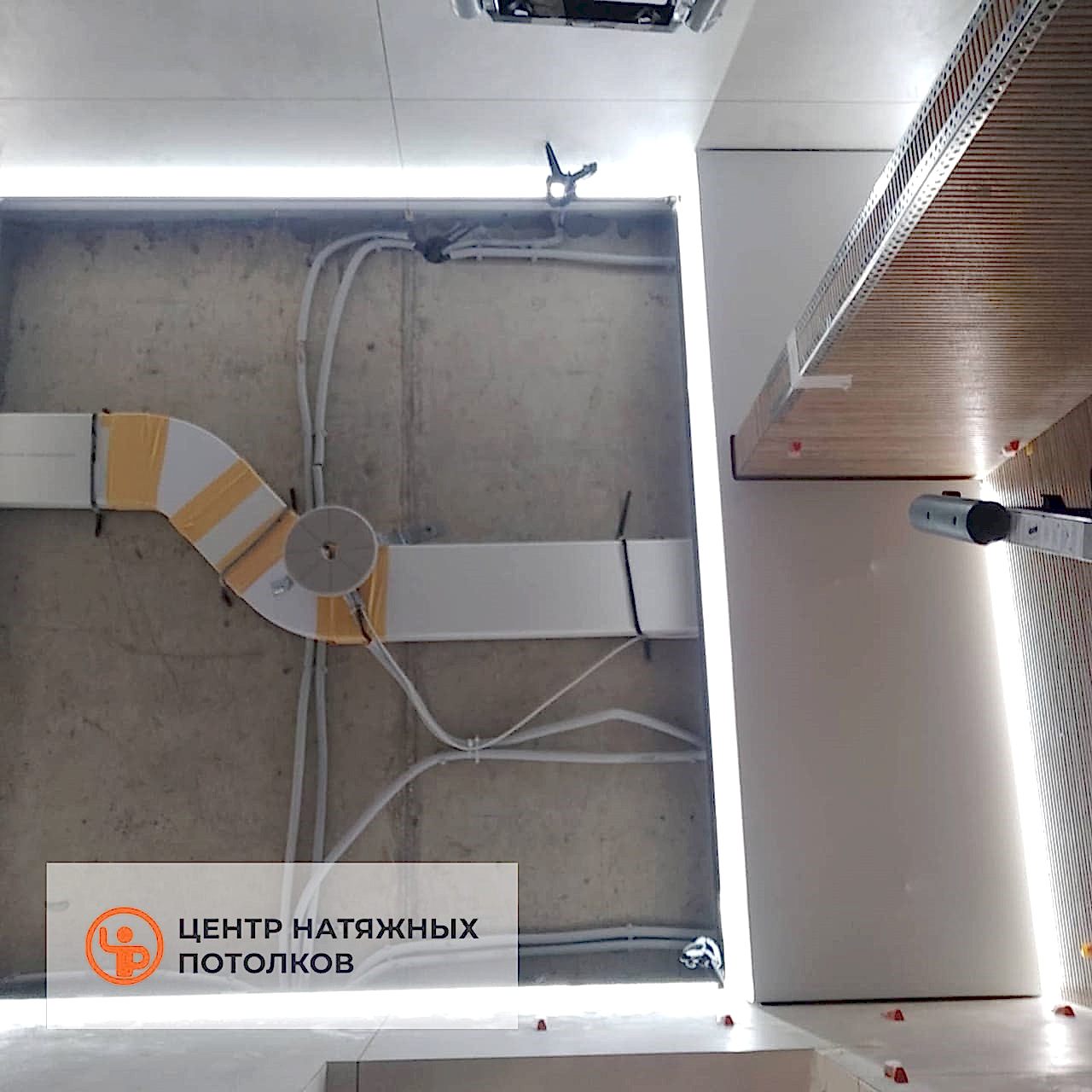 Данное решение носит название «парящий потолок» благодаря уникальному визуальному эффекту - свет, выбивающийся из Pin-Up по периметру потолка, создает ощущение, что сам потолок висит в воздухе и ни к чему не прикреплен.