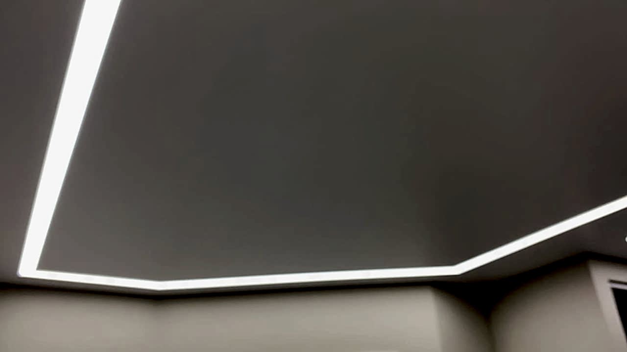 Световые линии на натяжном потолке представляют из себя светодиодную ленту, установленную в алюминиевый профиль. Мы используем профили Flexy и SLOTT от KRAAB. С ними получаем Pin-Up скрытые или линии-ниши соответственно.