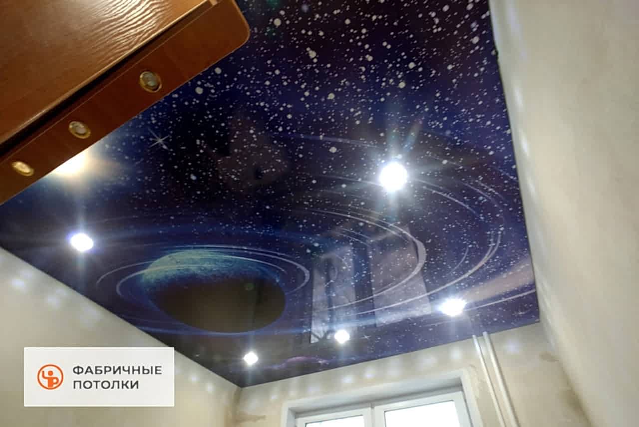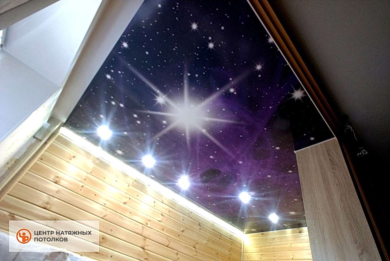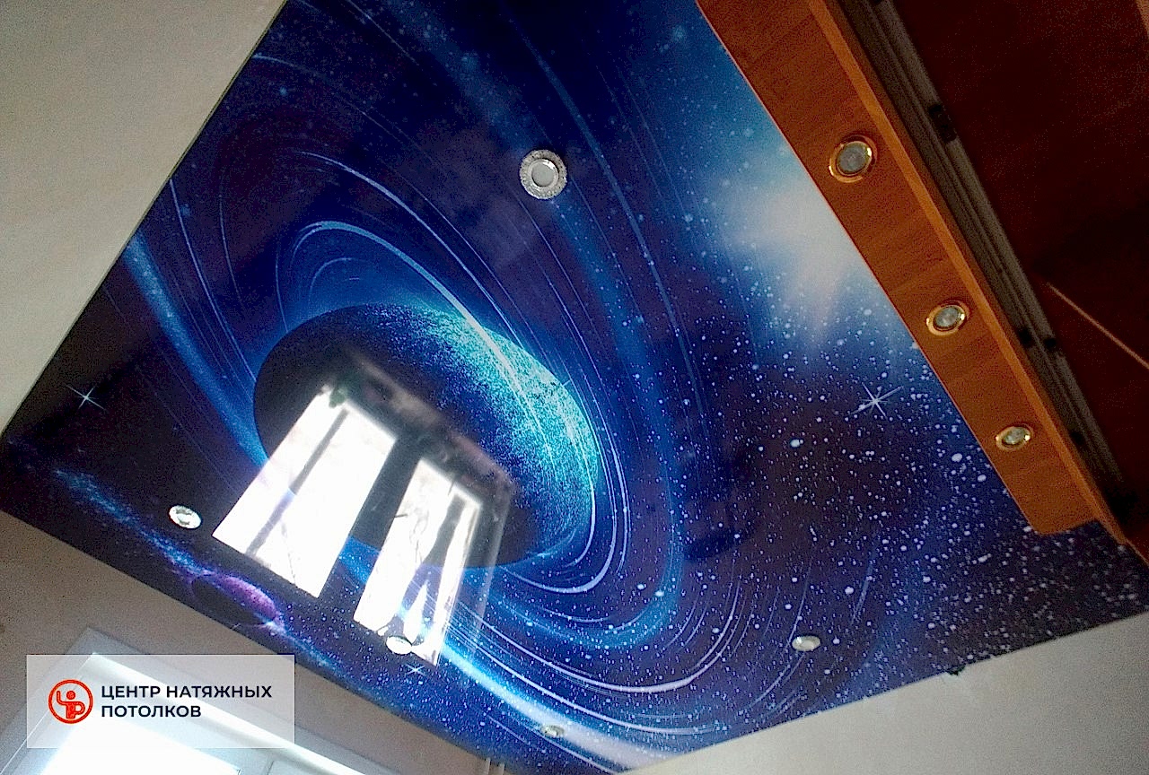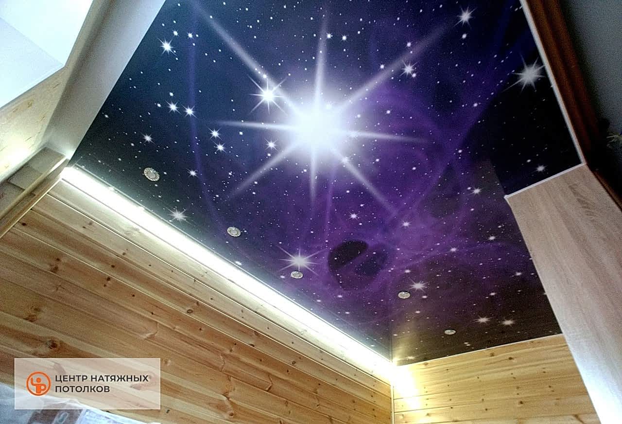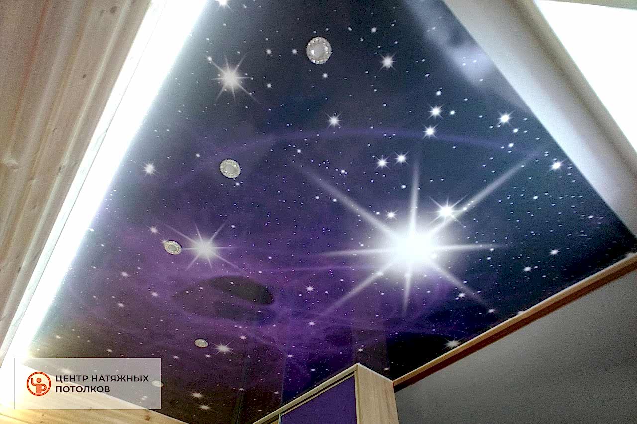 Натяжные потолки звездное небо - это бесконечное Pin-Up мерцающих звезд и планет. Могут состоять из оптоволоконных нитей, образующих мерцание звёзд или выглядеть как картина.