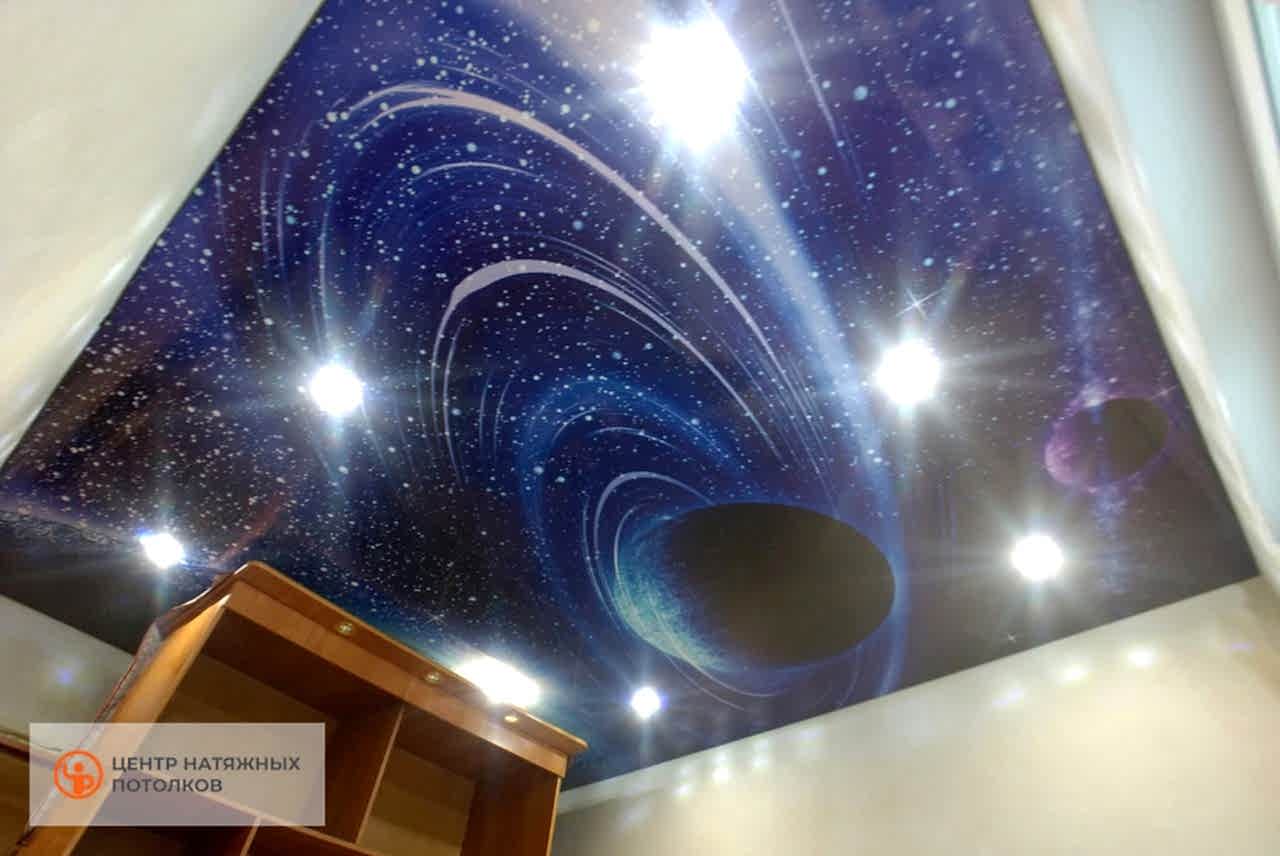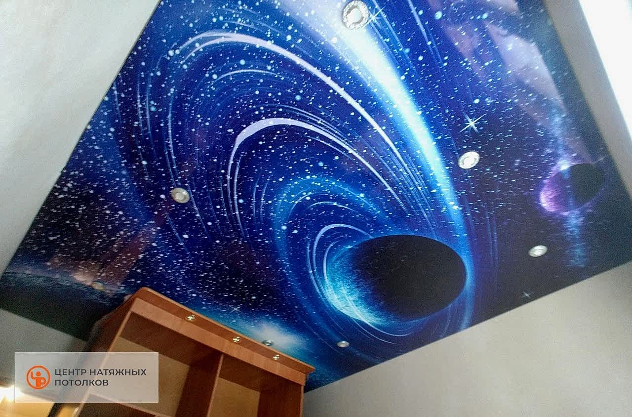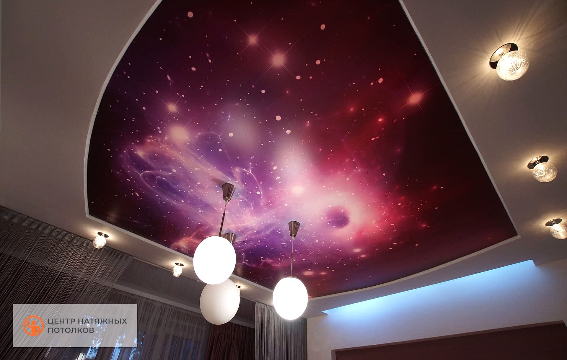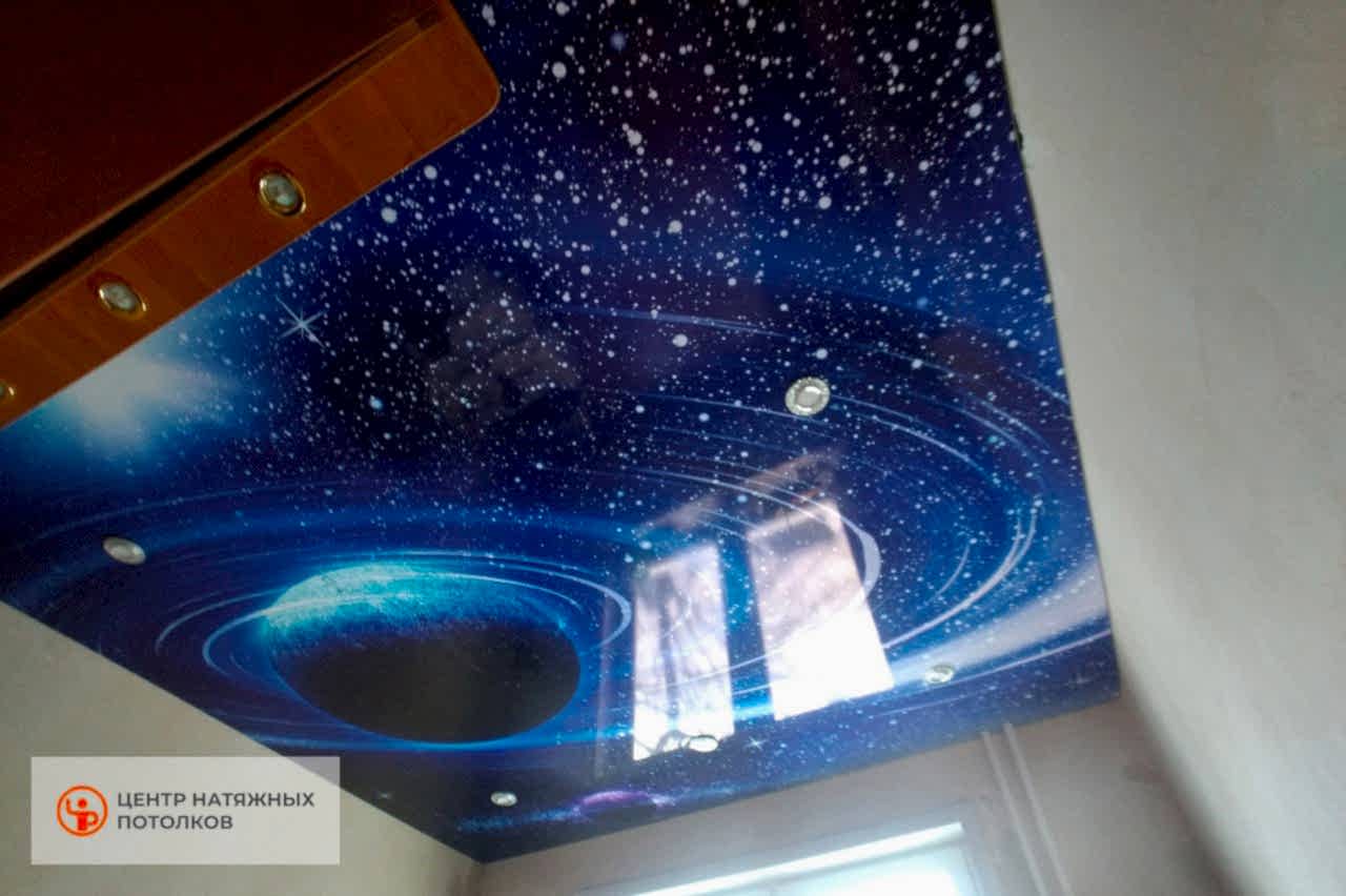 Натяжные потолки звездное небо - это бесконечное Pin-Up мерцающих звезд и планет. Могут состоять из оптоволоконных нитей, образующих мерцание звёзд или выглядеть как картина.