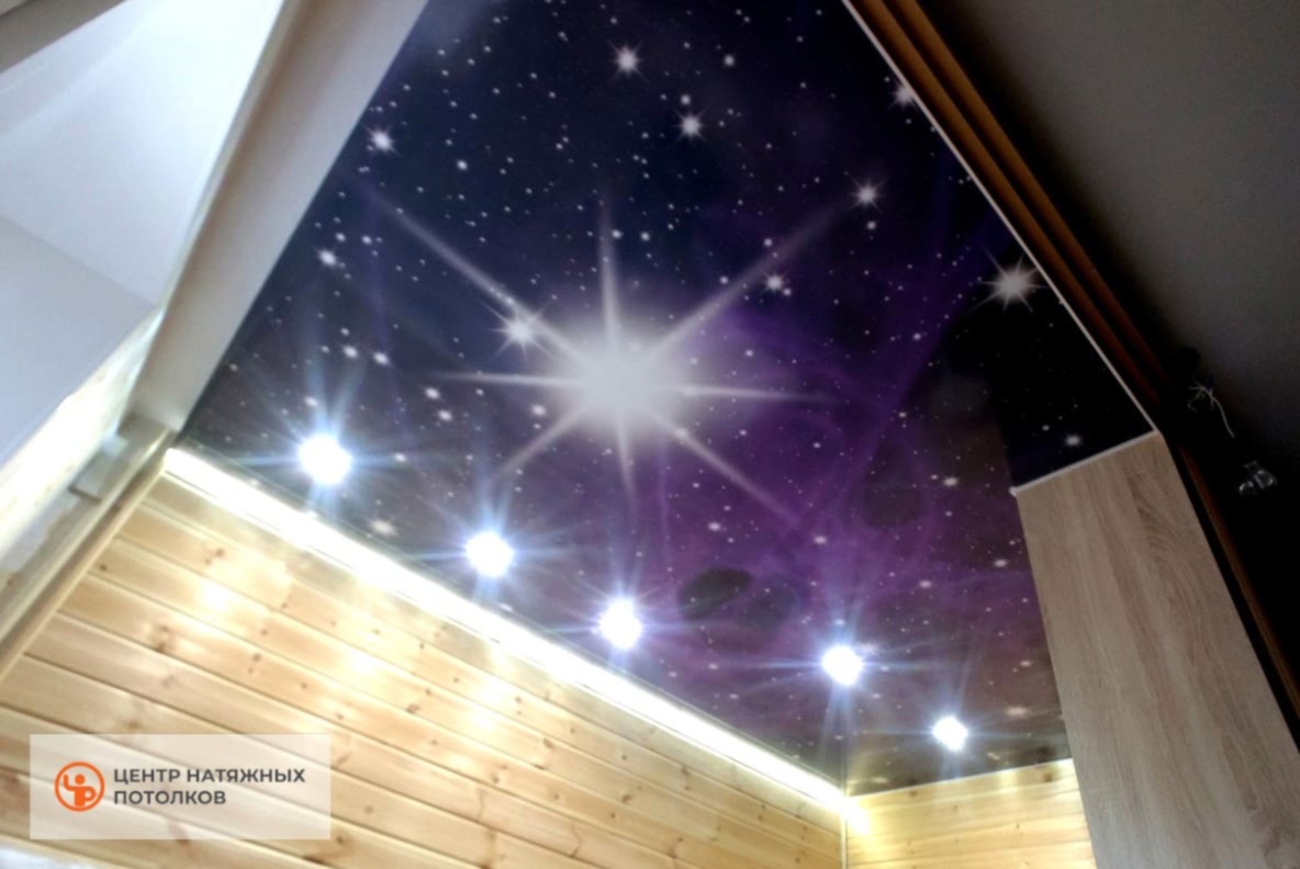 Чтобы вы могли прицениться и узнать стоимость монтажа натяжного потолка звездное небо, мы подобрали примеры наших Pin-Up