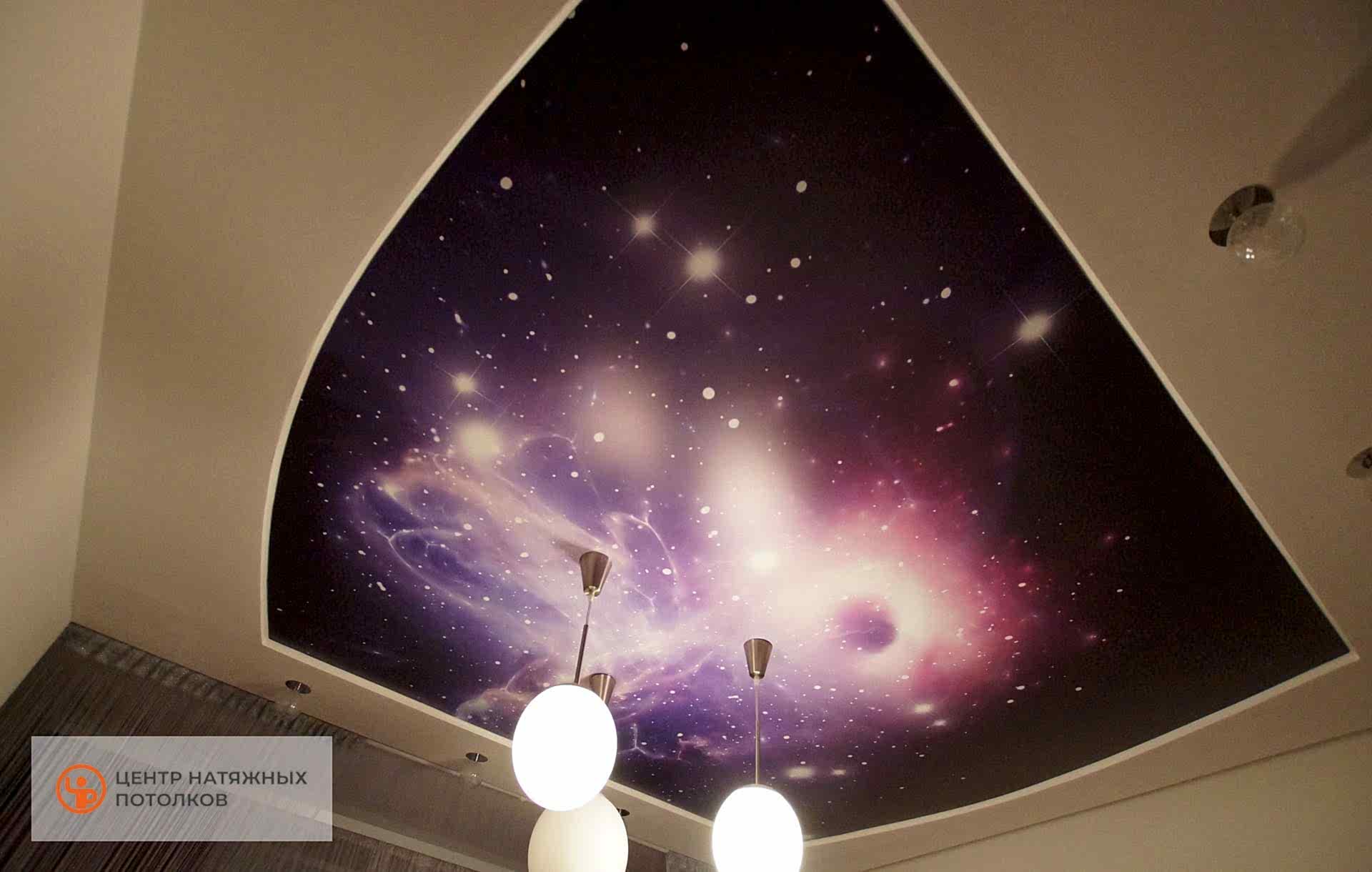 Подходят как плёночные, так и тканевые натяжные потолки. Если используются обычные чернила, тогда получается картинка, видимая только днём, с Pin-Up - светится в темноте.